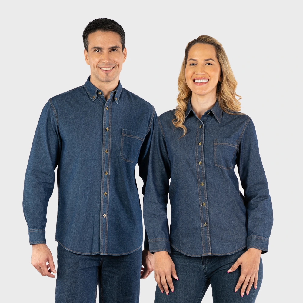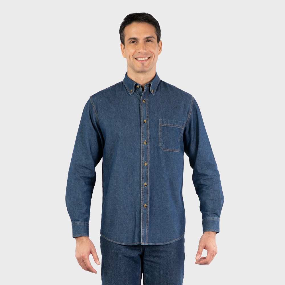 Camisa de jean para hombre, manga larga, 6.2 oz, color royal, marca Unicrese. Resistente y cómoda