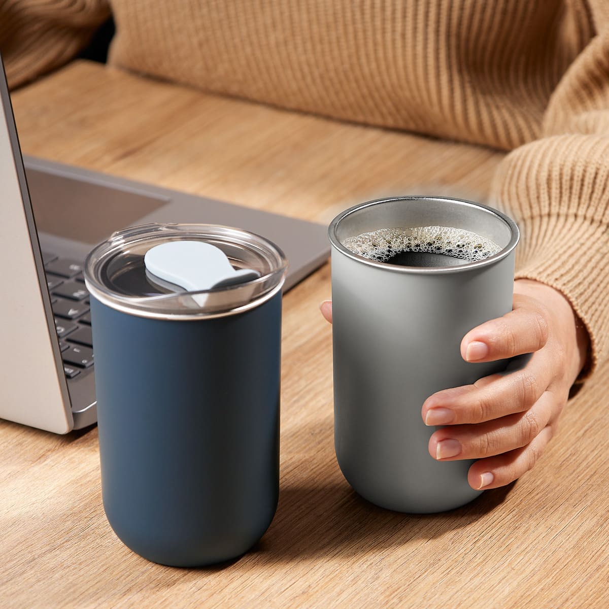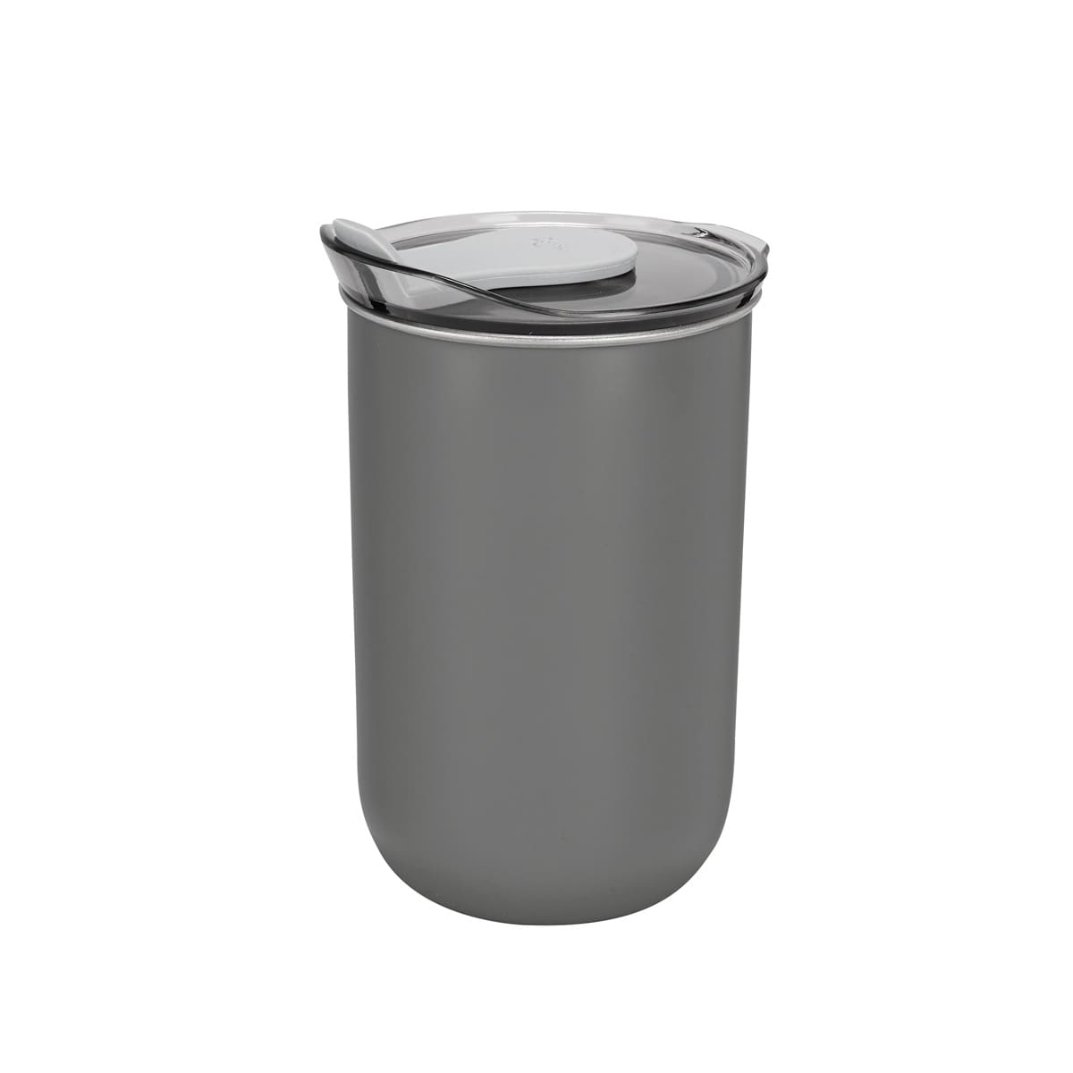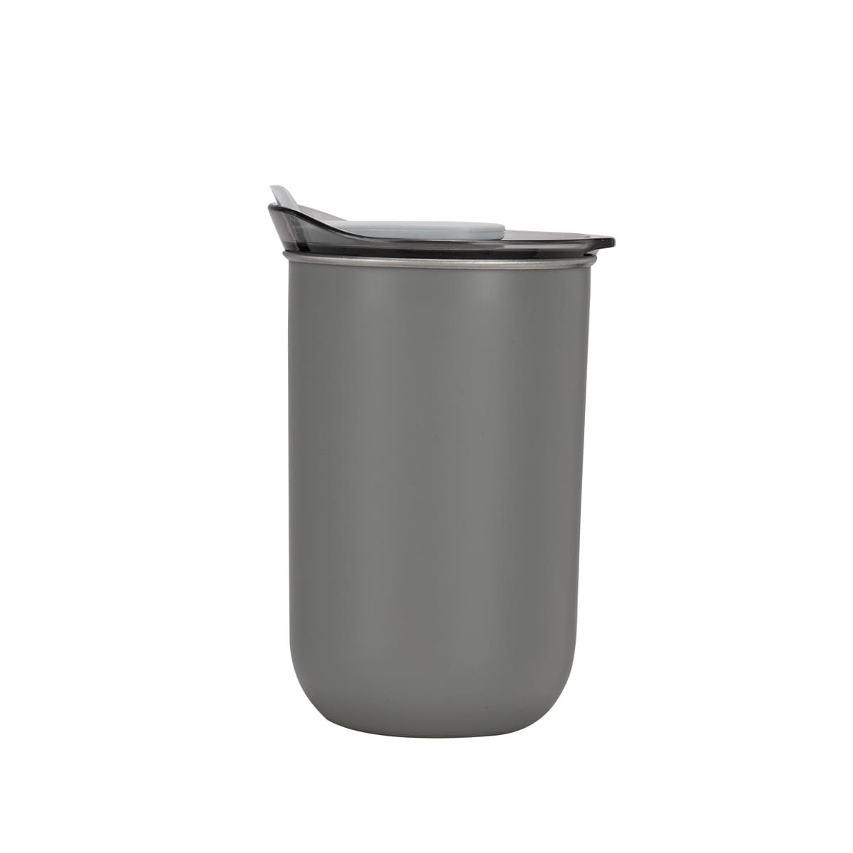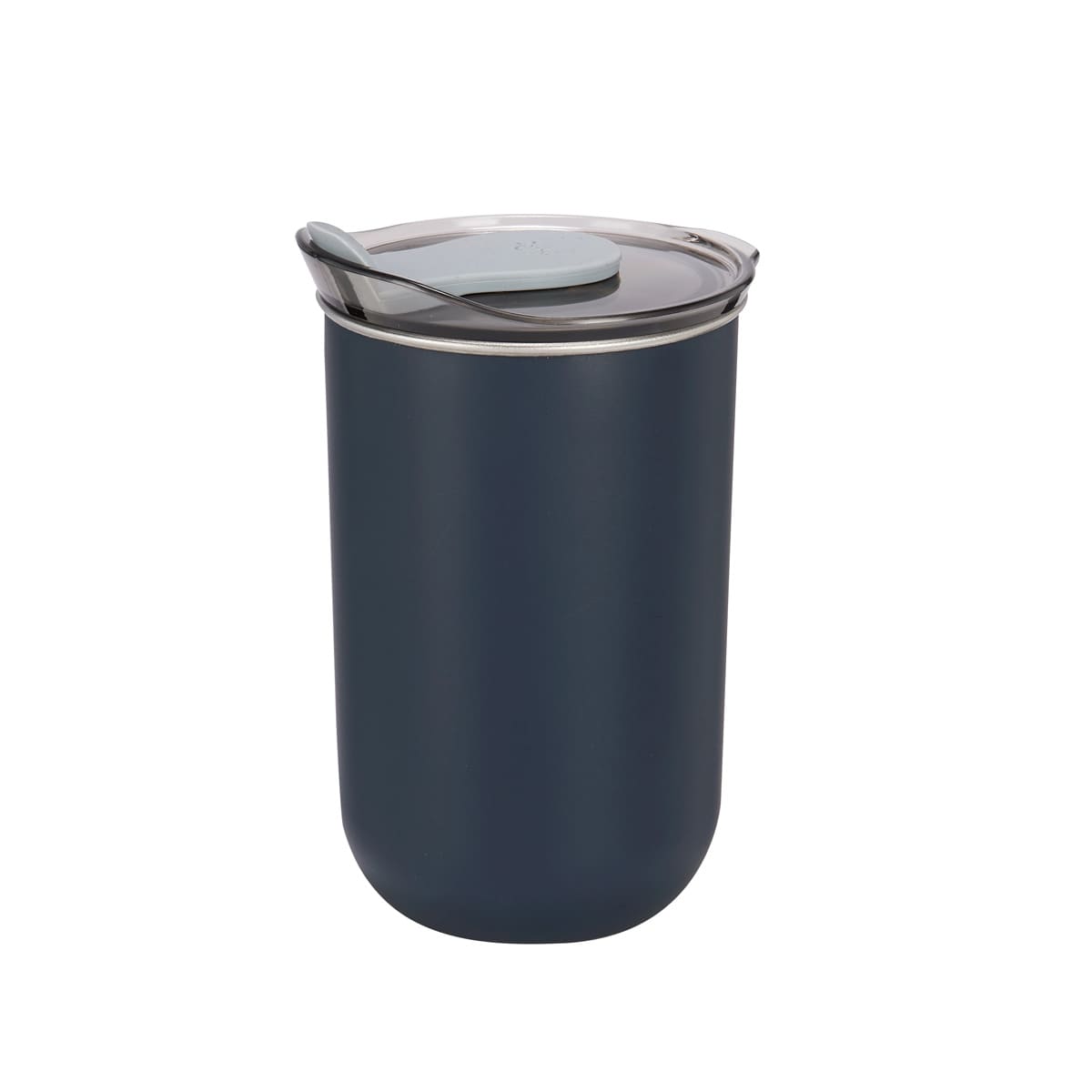 Doble pared. Pared interna de acero inoxidable y externa de plástico. Tapa de plástico con sistema push y sobretapa de silicón movible. Incluye caja individual.